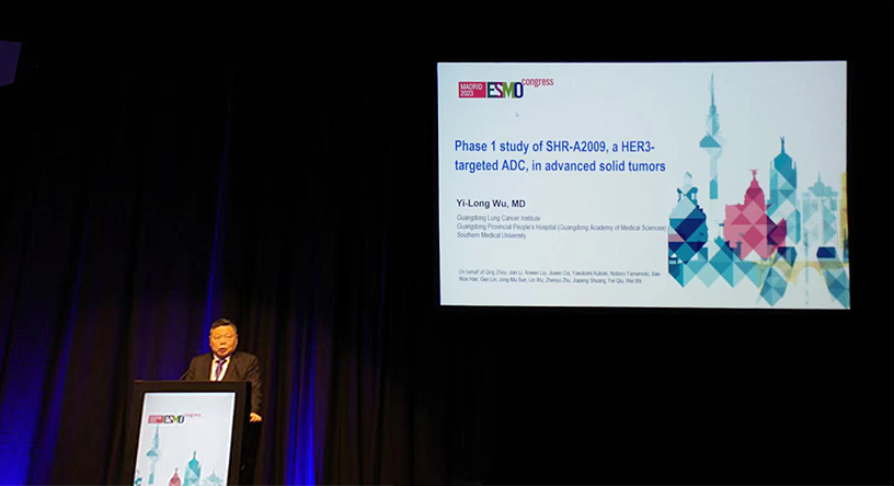 10月23日,九游会医药创新药、HER3靶向ADC药物SHR-A2009治疗晚期实体瘤的I期研究亮相2023 ESMO大会简短口头报告现场5。该研究由广东省人民医院的吴一龙教授牵头开展,吴一龙教授在现场公布该研究的重要进展。研究结果显示,SHR-A2009在经治晚期实体瘤患者中显示出可控的安全性和令人鼓舞的抗肿瘤活性。目前评估更高剂量的SHR-A2009在选定癌症类型(NSCLC和其他实体肿瘤)中作用的试验正在进行中。