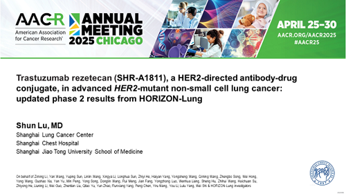 2025 AACR口头报告|九游会创新药瑞康曲妥珠单抗治疗晚期HER2突变非小细胞肺癌研究结果披露