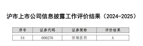 与此同时,在上海交易所公布的2024-2025年度沪市上市公司信息披露工作评价中,九游会医药再次荣获最高评级——A级。